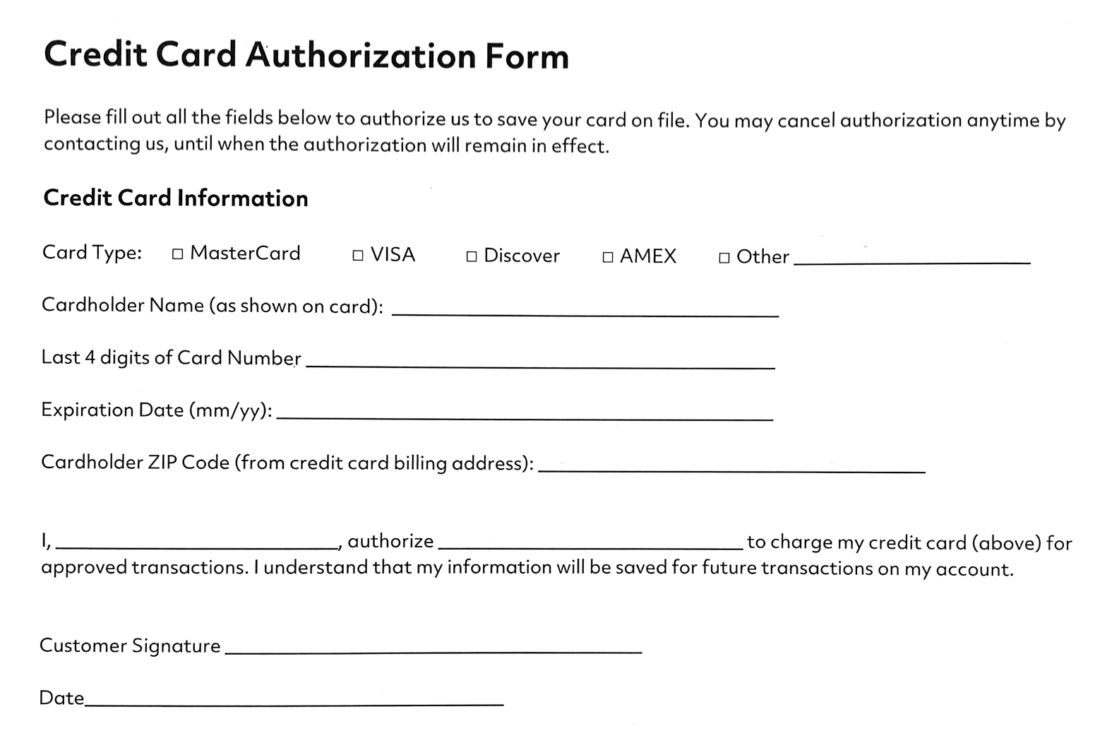 Credit Card Authorization Form
