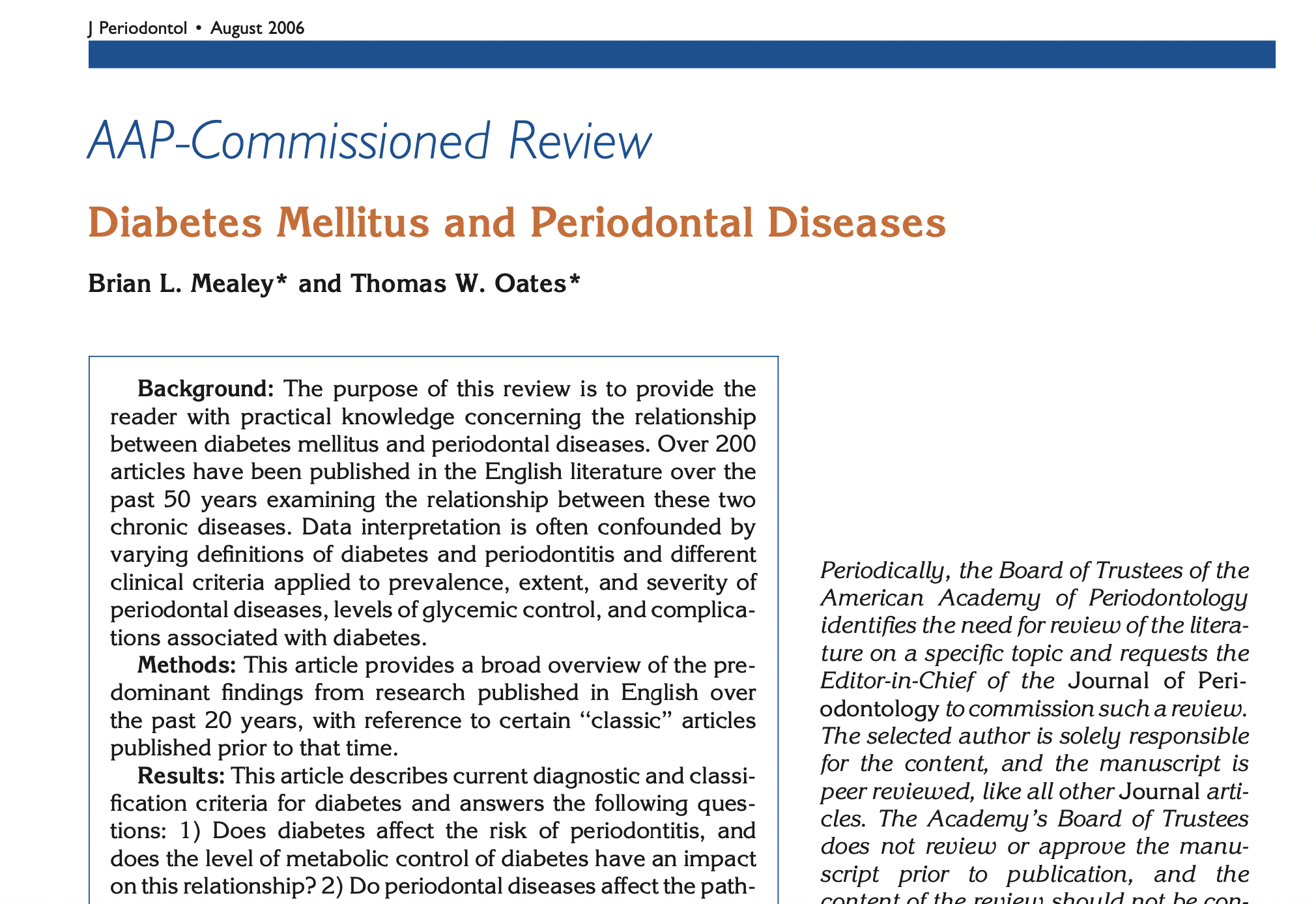 Diabetes Mellitus and Periodontal Diseases