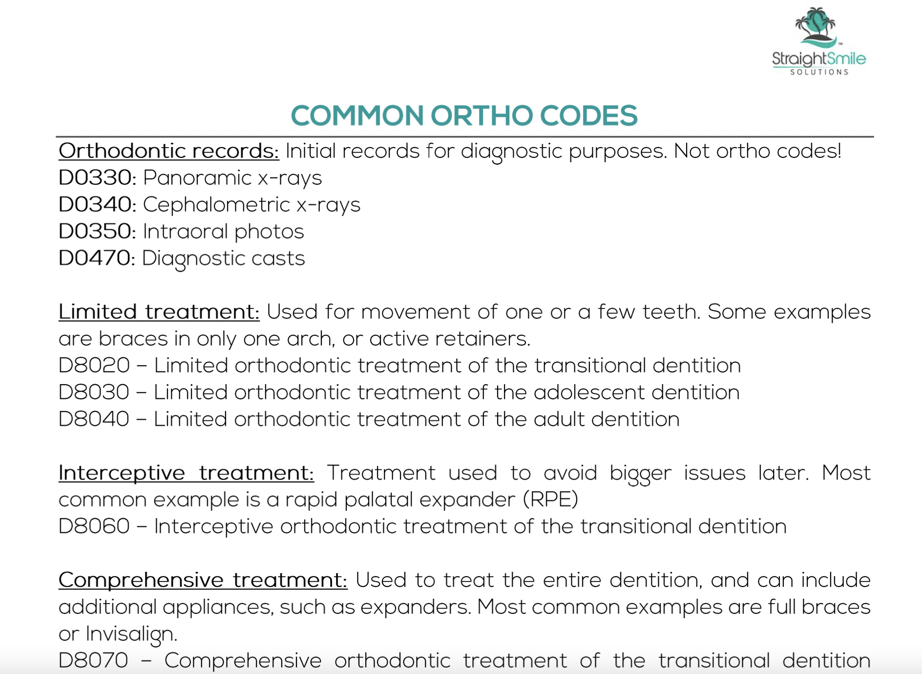 General Orthodontic Insurance Codes